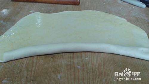将大面薄饼从一头向另一头卷起,卷成卷。