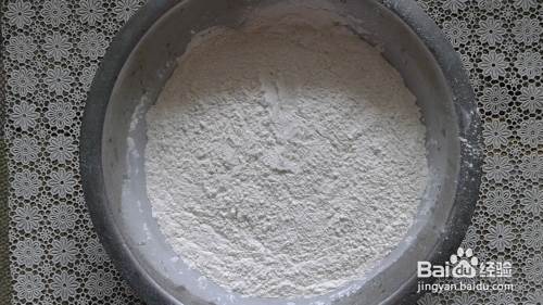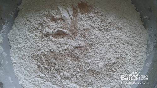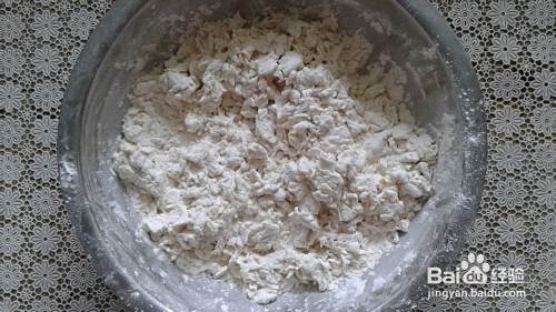 面粉中撒入适量酵母拌均匀,加入温水,一边倒一边搅,将面粉搅成絮状。