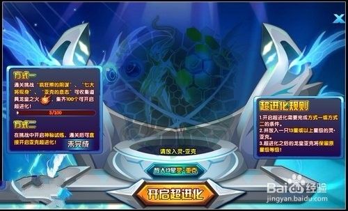 或者也可以选择挑战三种模式,收集龙皇之火,集齐100个龙皇之火,就可以开启超进化,将13星灵·亚克进行超进化。