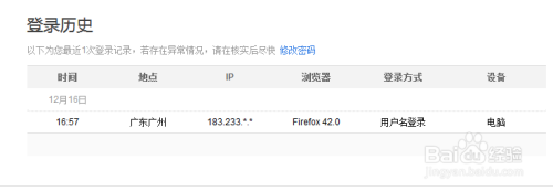 最下边可以看到我们的登录历史 以下为您最近1次登录记录,会提示若存在异常情况,请在核实后尽快修改密码 等相信息,这个最近登陆记录我们也可以在上边的账号的下边的查看更多里边查看。