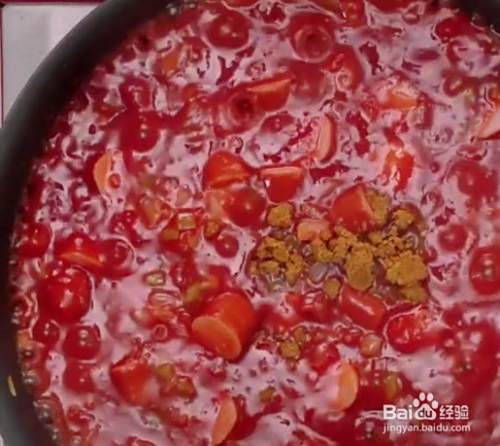 最后把香肠切块,放入锅中,倒入半碗水,加入一勺红糖