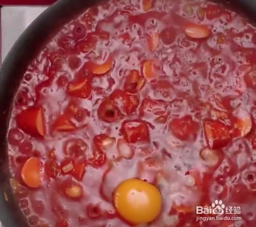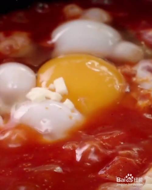 翻炒一分钟左右,在表面打一个鸡蛋在上面