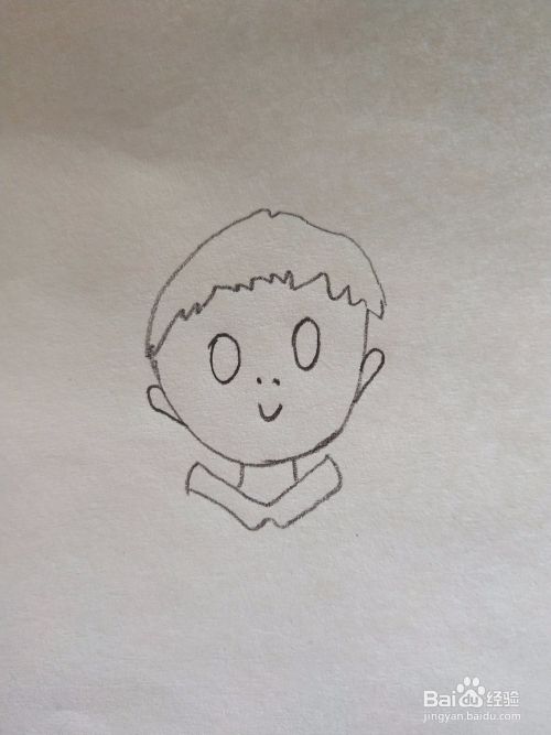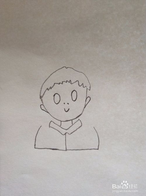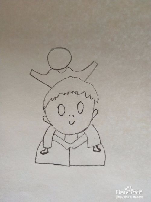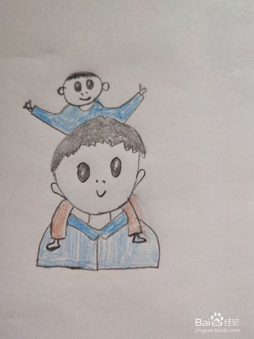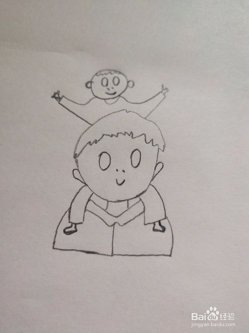 如图,画出爸爸脖子上的小男孩,双手臂自然张开,很开心的样子。