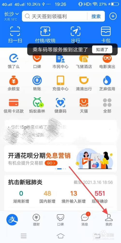 打开支付宝,选择“我的”