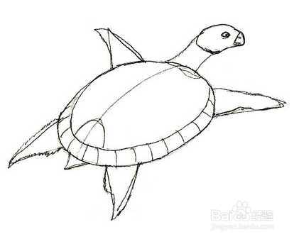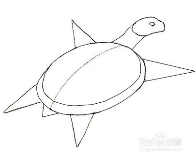 添加外壳的内部轮廓。画海龟的脖子,画一条三角形的小尾巴。