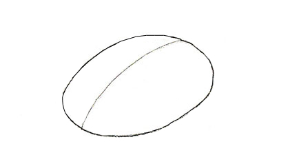 画一个带有菊茄低斜度的椭圆形。画出中线。