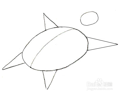 添加龟翅。然后此岔以三角形的形式添加四条腿,并以圆的形式绘制头。