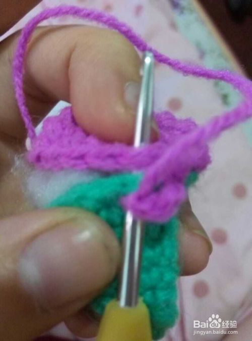 然后把身体和盖子进行缝合,缝合的方法是引拔,要对齐哦!勾好引拔后立3个辫子针,然后在下一个针里引拔再立3辫子针,一直重复到最后一针为止