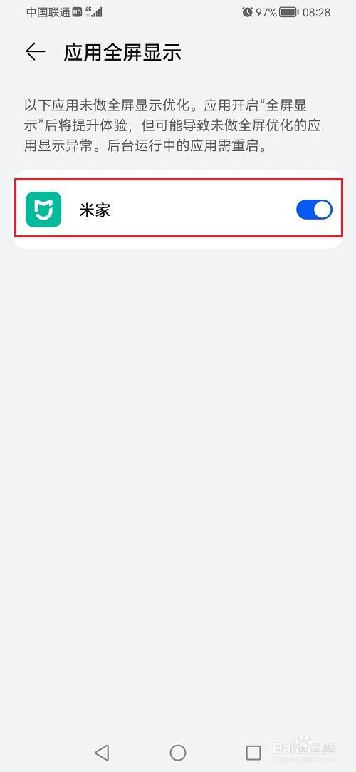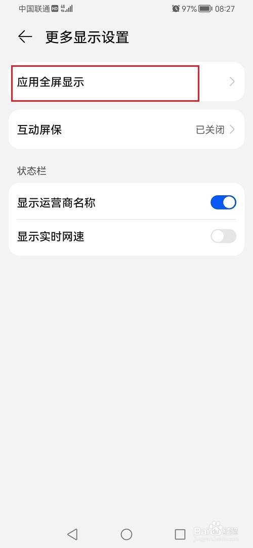 第五步进去之后,可以设置鸿蒙系统应用全屏显示,根据需要设置