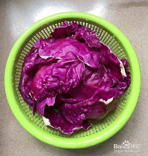 浸泡好的紫甘蓝,洗净后捞出,沥水。