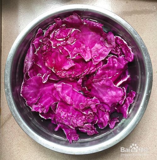 紫甘蓝,用手撕大片,用过滤的纯净水浸泡10分钟。