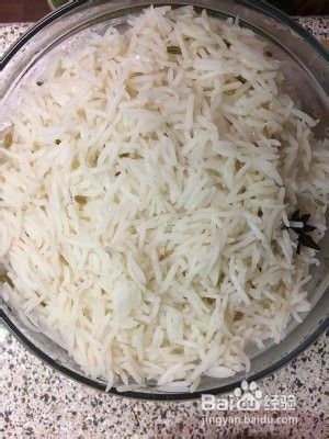 煮印度香米:锅内放入水,加点香叶,孜然粒,大料,一点桂皮,水开后加入印度香米,煮到5成熟,捞出香米。