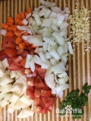 蔬菜和肉:把一下蔬菜切成丁:土豆,胡萝卜,豆角,青椒,菜花,洋葱(多点),西红柿,尖椒等等等,可以随意加其他蔬菜。