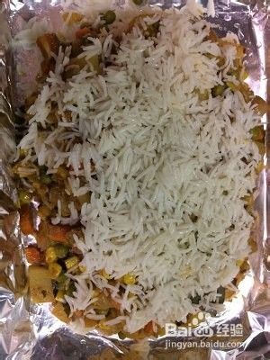烤香米饭:在烤盘中放点油,放一层香米,放一层上面炒好的菜,累积2,3层,最上面再放一层香米,用锡纸盖住,350华氏温度烤15-20分钟。