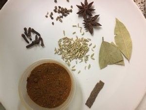 炒香料:锅内放入稍多点油,油7成热时加入孜然粒,干红辣椒,香叶,大料,小豆蔻,桂皮,丁香,炒出香味。