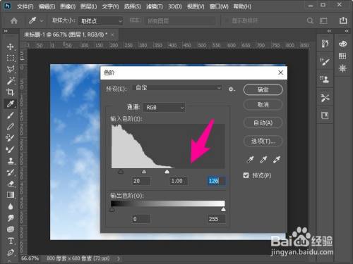 Ctrl+L调出色阶,根据需要将云彩更突出一些。