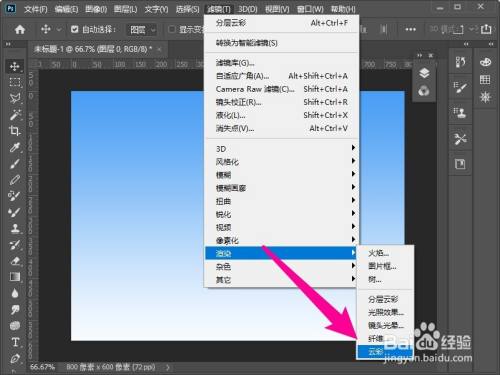 在ps软件中,用户需要使用两次滤镜中的渲染功能,可以制作真实的云朵。以下是具体操作步骤: