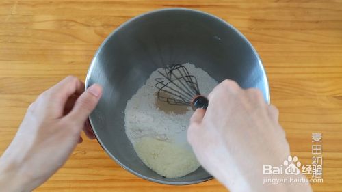 将干物质加入混合盆中,并与打蛋器均匀混合。