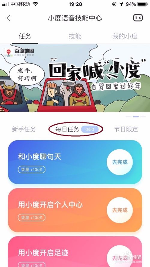 打开小度语音技能培训中心的界面选项中可选择“任务”选项卡中进行学习一些语音技能。