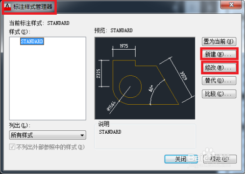 通过在上图中选择我们需要的表示形式来进行标注,通过快捷命令D打开标注样式管理器来进行设置,各个行业有各个行业的标准,通过需要来进行选择即可,如下图所示。