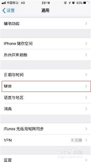 以IOS12系统为例,打开“设置”,找到“通用”选项卡,下拉,找到“键盘”选项,点击进入。