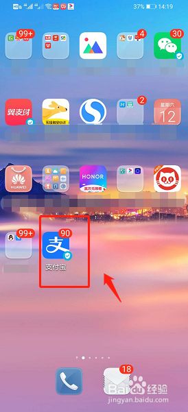 打开手机,找到支付宝打开,输入用户名和密码,