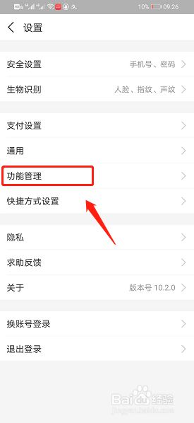 进入设置页面,找到功能管理选项,