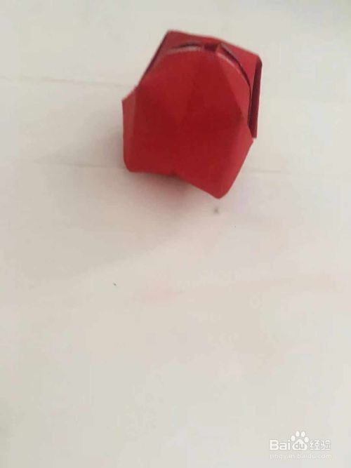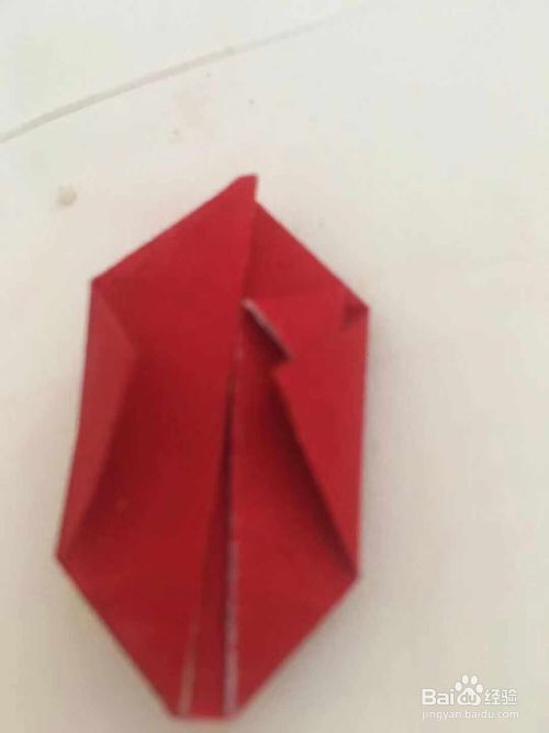 第四步 折叠完之后 再取开刚折叠过的小口袋 把上面的小三角塞折进小口袋里