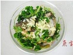 <P>原料<BR>鱼头一个,葱15克,姜15克,蒜15克,香菜末少许<BR></P>