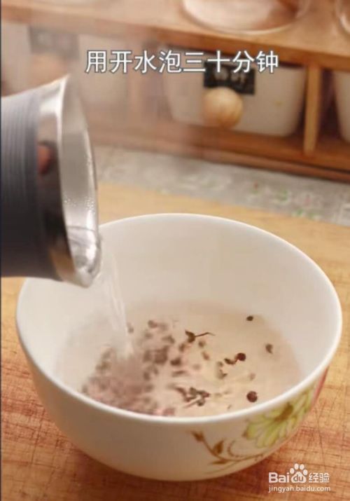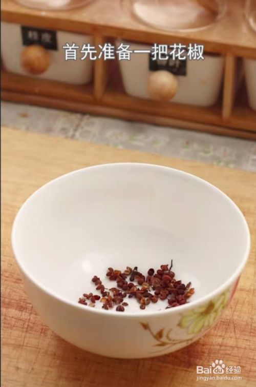 先准备一把花椒,加开水泡30分钟,泡成花椒水
