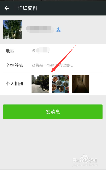 在打开的个人主页中找到个人相册,并且点击照片。