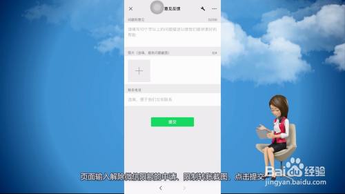 翻转进入问题和意见,页面输入解除微信限额的申请、限制转账截图、点击提交,等待官方审核解除限额即可。