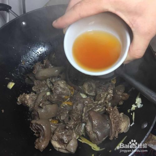 然后往锅中加入适量的老酒,翻炒三分钟,如下图所示。小编选择往锅中加入适量的老酒,是为了更好的去除竹鼠身上的腥味,大家在煮竹鼠的时候一定不要忘记加老酒。