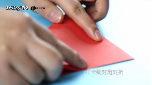 红色卡纸对角对折。