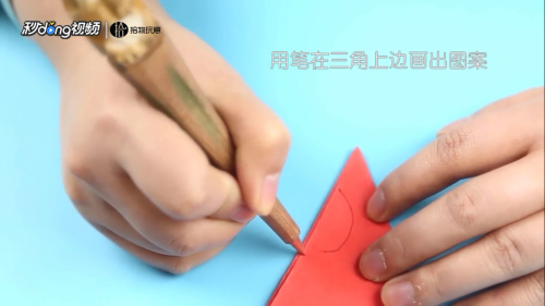 用笔在三角上边画出图案。