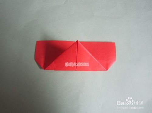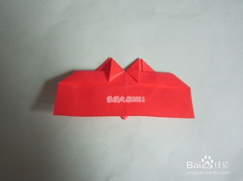 然后打开,左右两边沿中心向上面第一条折印对折,如图所示。