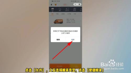 点击【允许】,之后选择搬家类型,点击【便捷搬家】。