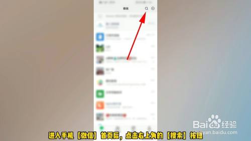进入手机【微信】首页后,点击右上角的【搜索】按钮。