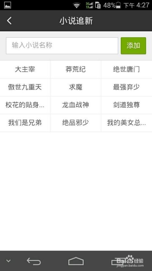 第五步,直接在添加栏中,输入你想看的小说。直接点击”如下图。添加“就完成了。