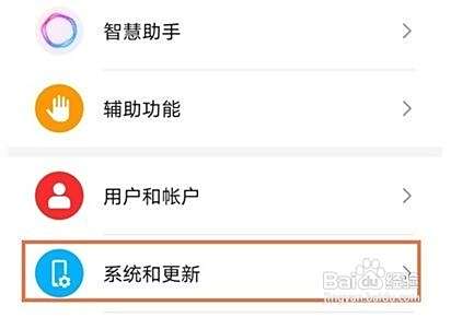 首先打开手机点击进入设置界面,点击打开【系统和更新】选项。