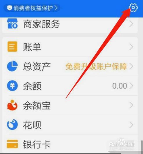 打开支付宝,在我的选项下点击设置图标。
