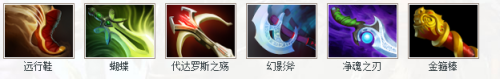 后期装:远行鞋+蝴蝶+代达罗斯之殇+幻影斧+净魂之刃+金箍棒