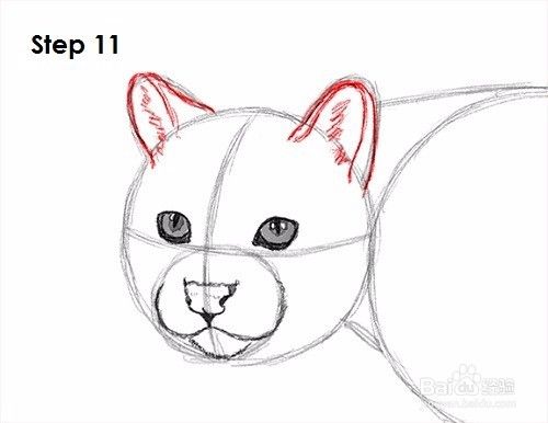 第五步:在山猫头顶部画两个小圆弧作为耳朵的引导。