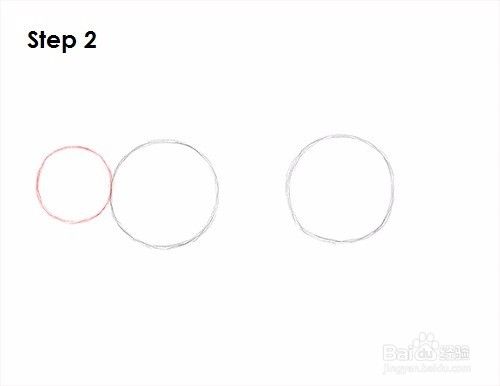 第2步:在左侧画另一个圆圈作为豹的头部指南。这个圈子应该是第一个大小的四分之三。它们的边缘应稍微接触。