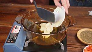 鱼块微煎,放入白葡萄酒、清水、整颗小番茄,煮10分钟。做这道菜最适合选用的就是鲈鱼啦,鲈鱼肉质紧实好入味,而且鱼刺少,美味又安全。