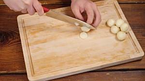 小番茄切块,蒜仁切片,烹饪起来更方便。