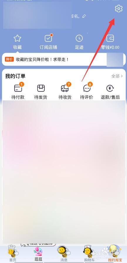 打开手机淘宝,点击我的,点击设置