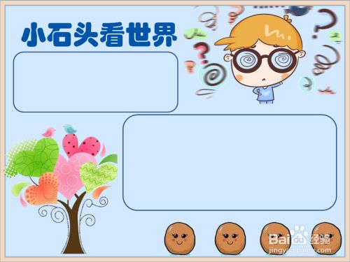 最后给整张手抄报涂上背景色,这张关于小石头看世界的手抄报就完成了。