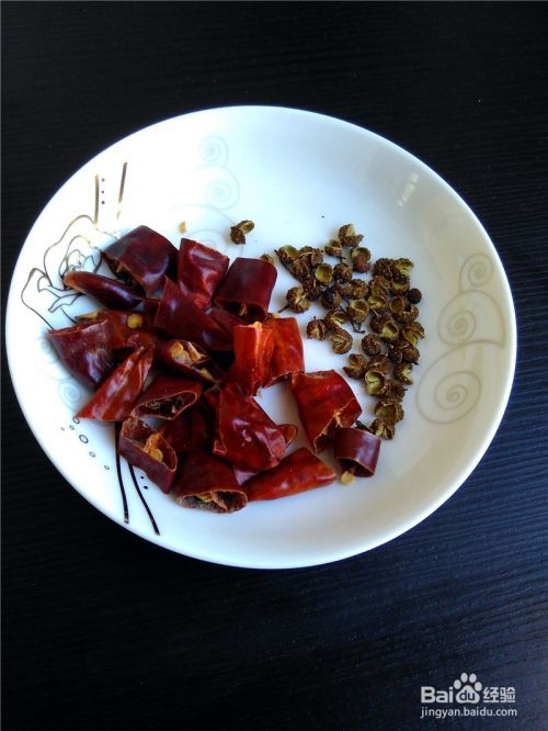 干辣椒剪断,备好花椒。