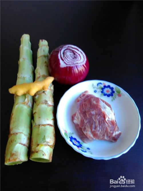 备好原材料:莴笋、猪肉、洋葱、仔姜。